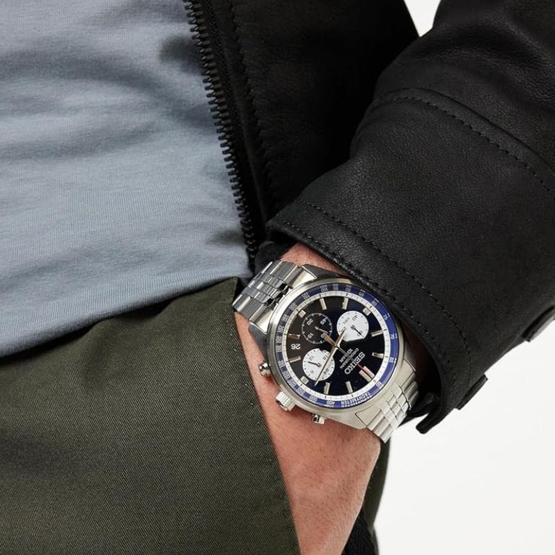 Seiko SSB427P1 hronograf muški sat plavi brojčanik metalna narukvica tachymeter 10 bar