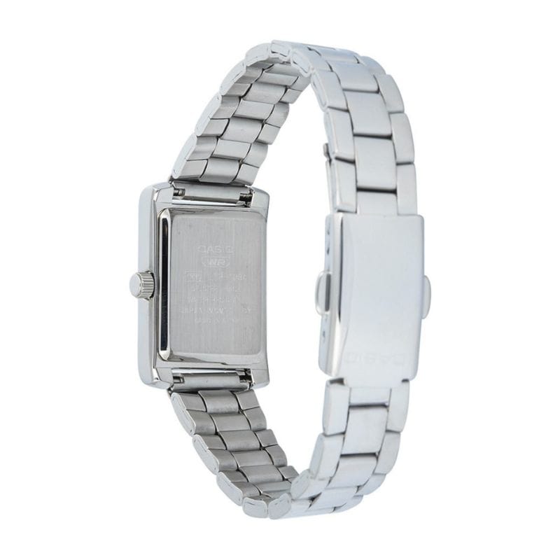 Casio LTP-1234DD-4A – Ženski sat s pravougaonim kućištem, nježnim rozim brojčanikom i srebrenom metalnom narukvicom. Elegantno, profinjeno i savršeno za svakodnevni stil.