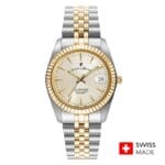 Pročitaj višeJacques Du Manoir JWG02202 – Ženski sat s kućištem i metalnom narukvicom u kombinaciji zlatne i srebrene boje, sa zlatnim brojčanikom i preciznim kvarcnim mehanizmom; elegantan i sofisticiran za svaki dan.