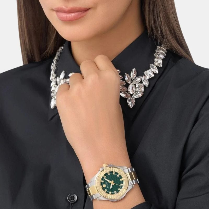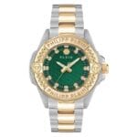 Pročitaj višePhilipp Plein PWOFA0625 – Ženski sat u kombinaciji zlatne i srebrene metalne narukvice sa smaragdno-zelenim brojčanikom i kristalnim indeksima. Luksuzan, upečatljiv i dizajniran da dominira stilom.