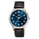 Q&Q C214J315Y – Muški sat s plavim brojčanikom i crnim kožnim remenom, precizan kvarcni mehanizam, idealan za poslovni i elegantni stil.