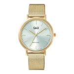 Pročitaj višeQ&Q C34A-005PY minimalistički ženski sat sa zlatnim kućištem i mesh narukvicom, te svijetlim brojčanikom bez brojeva. Elegantna jednostavnost koja savršeno pristaje uz svaki stil – idealan za svakodnevnu eleganciju.