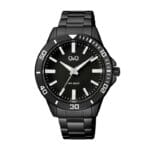Q&Q Q28B-004PY je muški sat s kućištem promjera 44 mm i debljine 12 mm, izrađen od nehrđajućeg čelika u crnoj boji. Narukvica je također od nehrđajućeg čelika u crnoj boji, duljine 210 mm i širine 18 mm. Vodootpornost iznosi 5 ATM (50 metara), što znači da je pogodan za plivanje, ali nije preporučljiv za ronjenje.