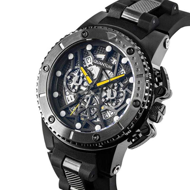 Pročitaj višeQuantum HNG535.651 – Muški sat u crnoj izvedbi sa skeleton brojčanikom, žutim kazaljkama i robusnim silikonskim remenom. Masivan, moderan i stvoren za ljubitelje upečatljivog sportskog stila.