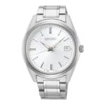 Pročitaj višeSeiko SUR307P1 elegantan muški sat sa čistim bijelim brojčanikom i prikazom datuma. Minimalistički dizajn i kvalitetna metalna narukvica čine ga idealnim za svakodnevno nošenje.