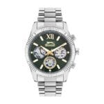 Slazenger SL.09.2316.2.03 muški sat sa zelenim brojčanikom i izraženim hronograf funkcijama. Srebrena metalna narukvica i robusan dizajn daju mu snažan i moderan izgled za svaki dan.
