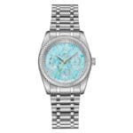 Pročitaj višeSlazenger SL.09.2343.4.01 — elegantan ženski sat u srebrenom tonu sa upečatljivim svijetloplavim, bisernim brojčanikom koji daje luksuzan i nježan dojam, reljefno kućište i detaljan dizajn čine ga vizuelno bogatim i profinjenim. Idealan izbor za dame koje žele elegantan sat koji se ističe, ali ostaje sofisticiran.