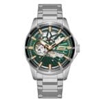 Slazenger SL.09.2413.1.03 – elegantan automatski muški sat sa spektakularnim skeleton brojčanikom u tamnozelenoj boji. Kombinacija bakrenih markera i otvorenog mehanizma daje mu luksuzan i premium izgled. Dolazi na srebrenoj metalnoj narukvici, idealan za muškarce koji žele upečatljiv sat sa stilom i pouzdanim automatskim mehanizmom.