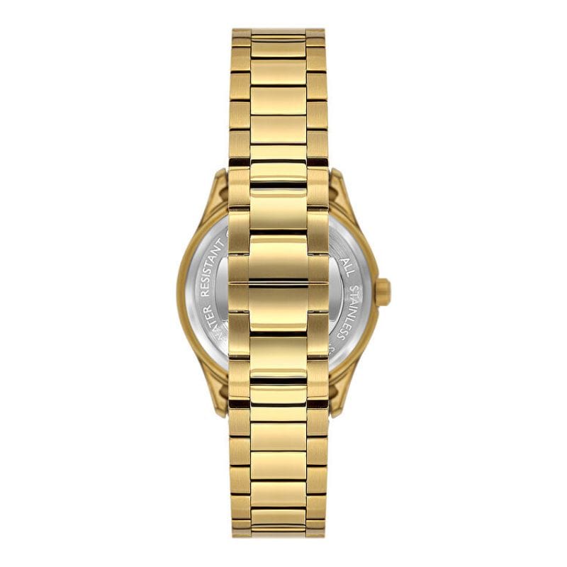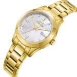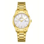 Slazenger SL.09.2465.3.04 elegantan ženski sat sa zlatnim kućištem i metalnom narukvicom u zlatnoj boji. Sedefasti brojčanik ukrašen kristalnim markerima daje profinjen i luksuzan izgled, dok diskretna funkcija datuma dodaje praktičnost.