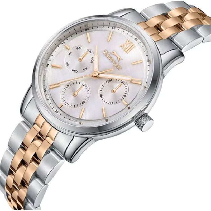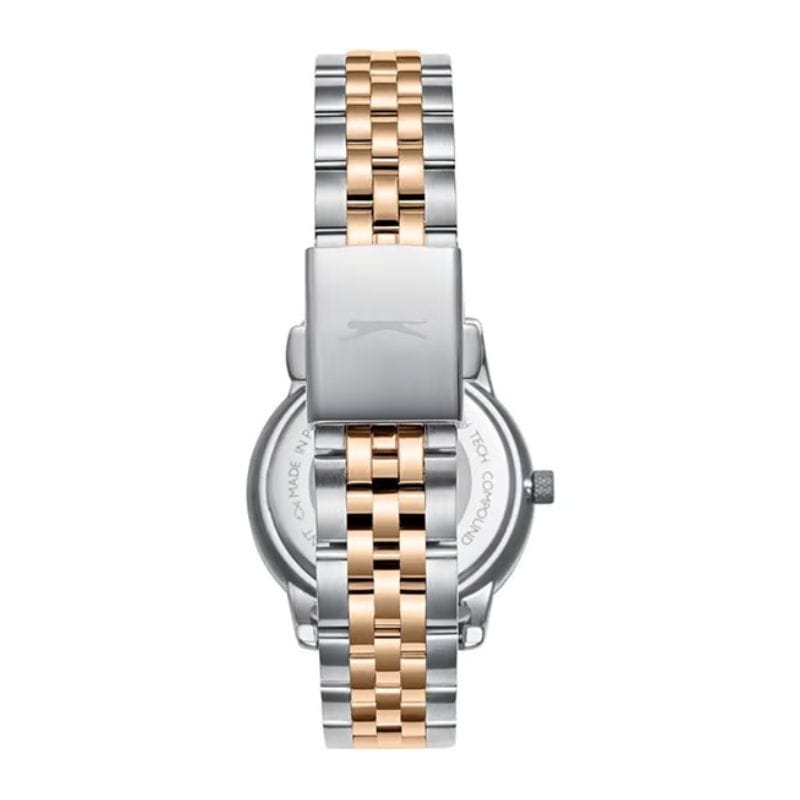 Pročitaj višeSlazenger SL.09.2471.4.03 elegantan ženski sat sa srebrenim kućištem i metalnom narukvicom u kombinaciji srebrne i rose zlatne boje. Biserni brojčanik s multifunkcijskim prikazom daje profinjen izgled, idealan za svakodnevne i poslovne prilike.