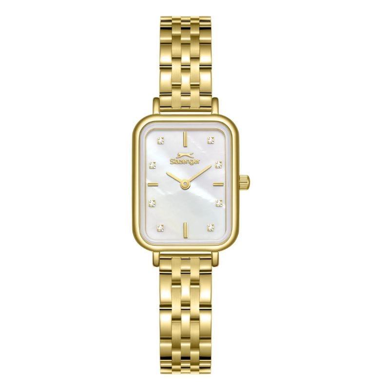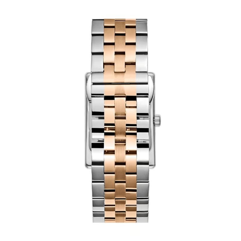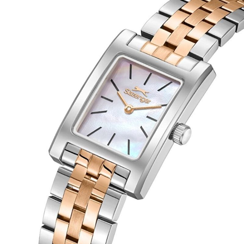 Slazenger SL.09.2505.3.05 elegantan ženski sat s pravougaonim kućištem u srebrenoj boji i profinjenom metalnom narukvicom u kombinaciji srebrnih i rose-gold tonova. Sedefasti brojčanik s minimalističkim oznakama daje nježan i sofisticiran izgled, dok čiste linije dizajna naglašavaju bezvremensku eleganciju.