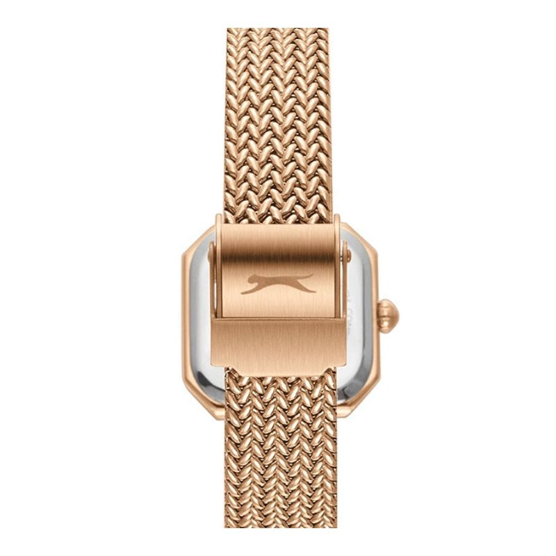 Slazenger SL.09.2534.3.03 je elegantan ženski sat sa rose-gold mesh narukvicom i bisernim brojčanikom ukrašenim sjajnim detaljima. Sofisticiran dizajn čini ga idealnim izborom za svakodnevne i svečanije kombinacije.