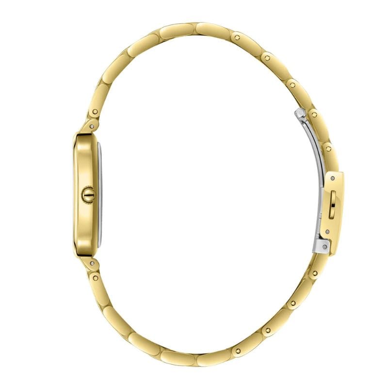 Pročitaj višeSlazenger SL.09.2549.3.02 profinjen ženski sat sa pravougaonim kućištem i bisernim brojčanikom ukrašenim elegantnim detaljima. Zlatna metalna narukvica daje luksuzan i ženstven izgled, idealan za svečane prilike i svakodnevnu eleganciju.
