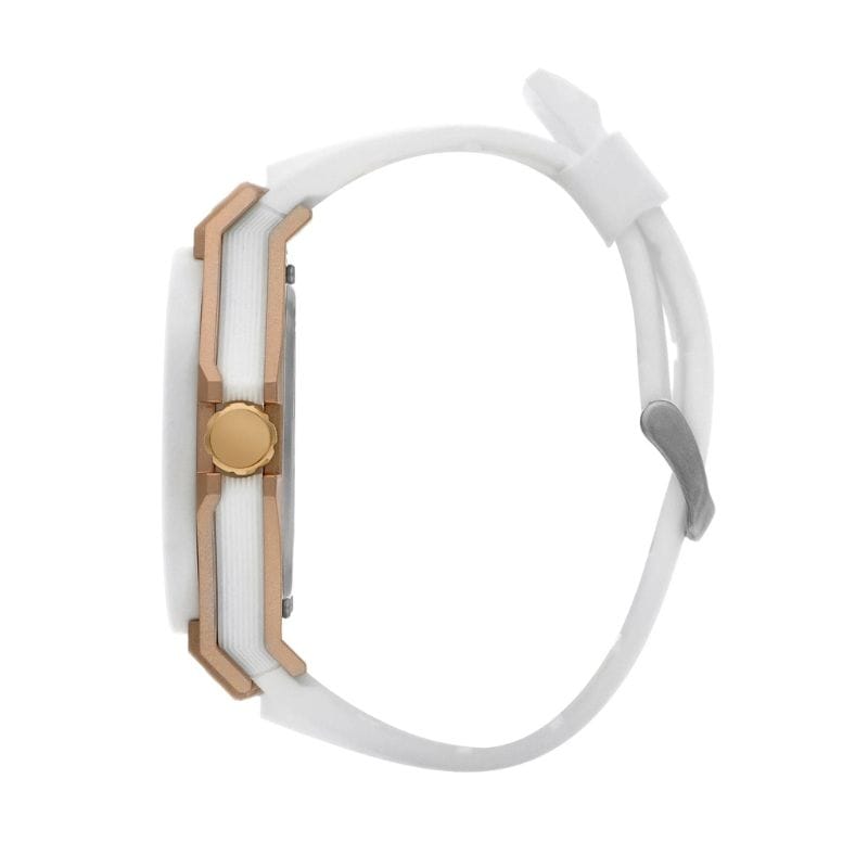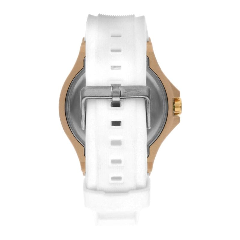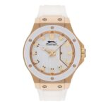 Elegantni Slazenger SL.09.6572.1.03 kombinuje bijeli brojčanik i remen sa luksuznim zlatnim detaljima, stvarajući prepoznatljiv i moderan izgled. Kućište u zlatnoj boji naglašava premium stil sata, dok bijeli silikon remen pruža udobnost i savršeno pristajanje.